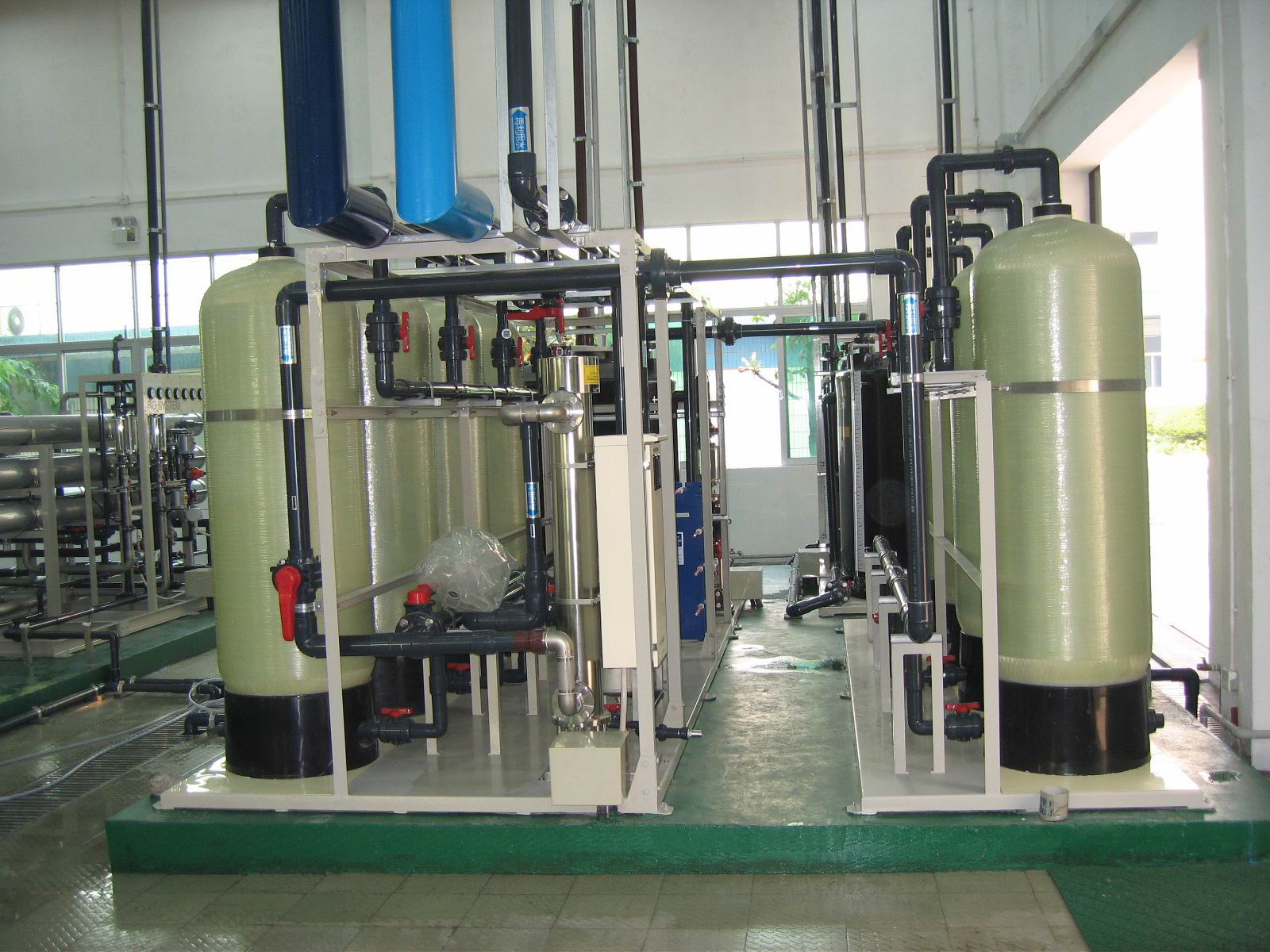 为满足用户需要,达到符合标准的水质,尽可能地减少各级的污染,延长设备的使用寿命、降低操作人员的维护工作量.在工艺设计上,取达国家自来水标准的水为源水,再设有介质过滤器,活性碳过滤器,钠离子软化器、精密过滤器等预处理系统、RO反渗透主机系统、离子交换混床(EDI电除盐系统)系统等。系统中水箱均设有液位控制系统、水泵均设有压力保护装置、在线水质检测控制仪表、电气采用PLC可编程控制器,真正做到了无人职守,同时在工艺选材上采用推荐和客户要求相统一的方法,使设备与其它同类产品相比较,具有更高的性价比和设备可靠性。